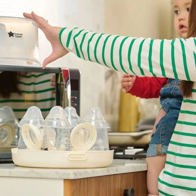 The Tommee Tippee Microwave Steam Steriliser offers a quick and effective way to sterilise your baby’s bottles and accessories. Using natural steam, it kills 99.9% of harmful germs in just minutes, ensuring your baby’s feeding items are safe and hygienic. Its compact design fits most microwaves, making it perfect for busy parents who need a reliable, hassle-free sterilising solution at home or on the go.