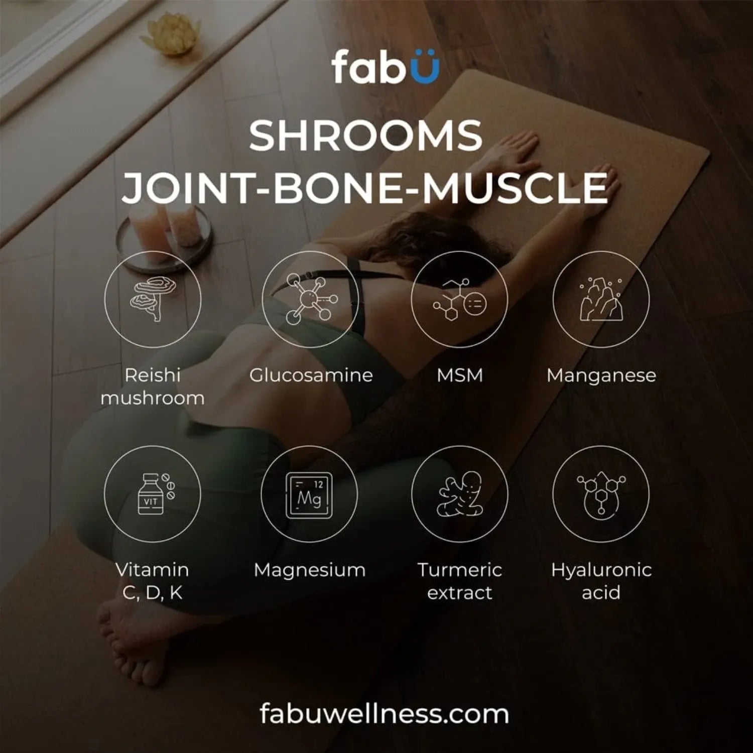 With consistent use, you’ll support healthy joints, bones, and muscles, while reducing muscle fatigue and enhancing mobility. This powerful blend of Reishi mushroom, glucosamine, MSM, and key vitamins and minerals works to maintain bone strength, promote collagen formation, and