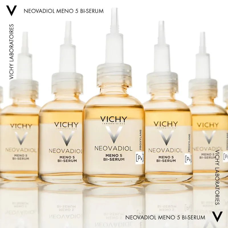 During perimenopause and menopause, the skin often bears the visible impacts of hormonal changes, with reduced collagen production and lipid loss accelerating signs of ageing. Neovadiol Meno 5 Serum, with a unique synergy of dermatological actives, targets five visible signs of menopause on the skin, including increased dryness, dullness, uneven skin tone and texture, and loss of skin elasticity; causing skin to appear thinner and with more prominent wrinkles.