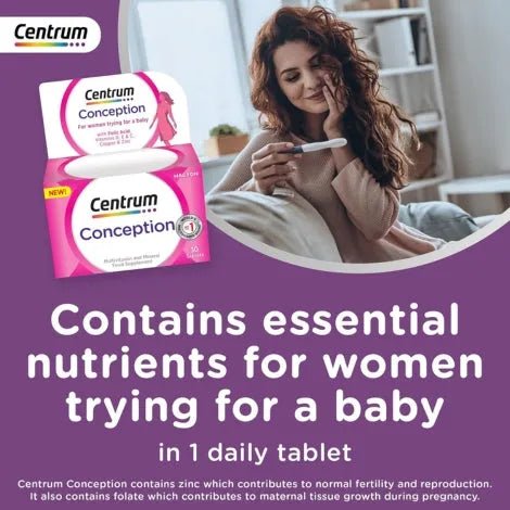 Centrum Conception is a multivitamin supplement designed for women preparing for pregnancy. It delivers essential vitamins and minerals to support the unique nutritional requirements during this critical period.