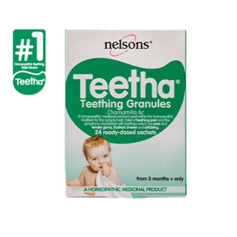 Discover the power of Teetha Teething Granules and Teetha Teething Gel, homeopathic remedies for relieving teething pain and related symptoms such as sore and tender gums, flushed cheeks, and excessive drooling.