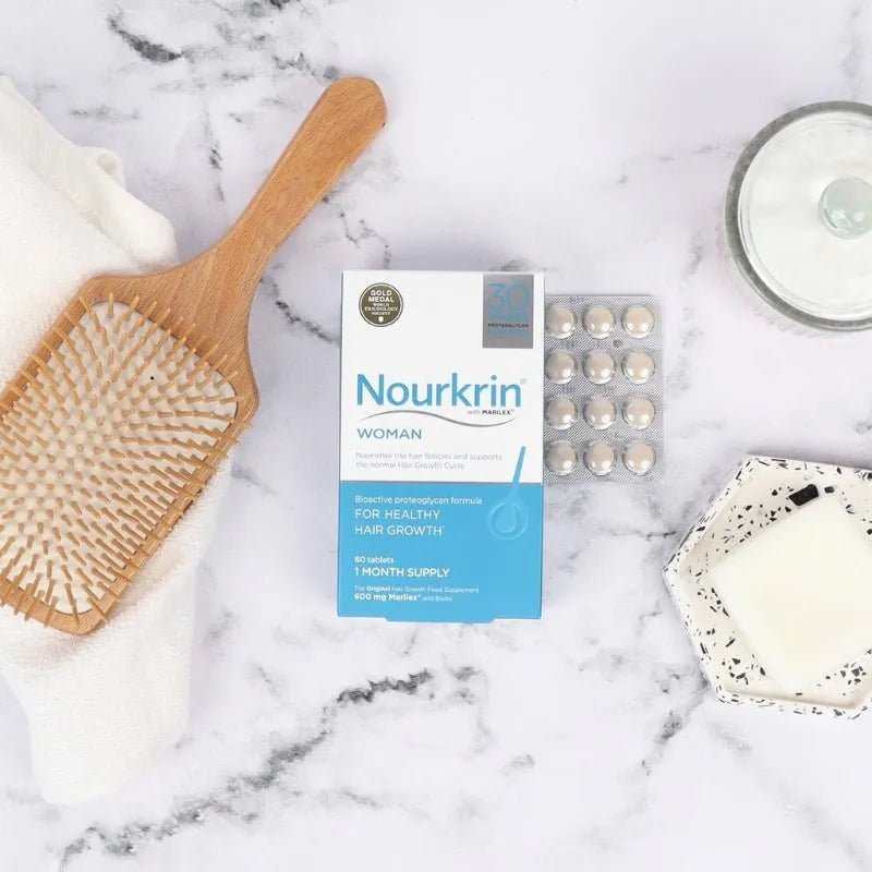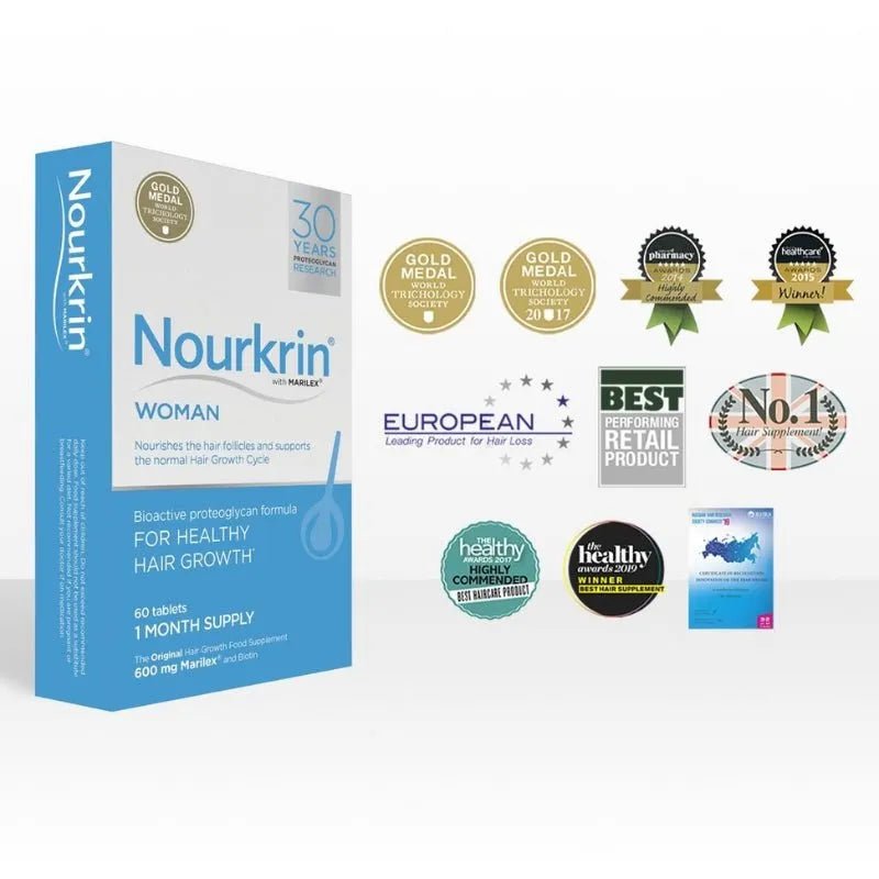 Nourkrin Woman contains bioactive proteoglycan components, including Marilex, which have been scientifically developed as a Proteoglycan Replacement Therapy. This formulation works with the natural Hair Growth Cycle to promote the normal function and maintenance of healthy hair follicles.