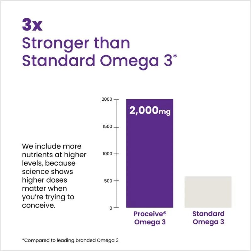 Proceive Conception Omega 3 delivers a potent dose of EPA and DHA, tailored for women and men preparing for pregnancy. Each daily serving provides 2,000mg of pure, high-strength omega 3, including 660mg EPA and 440mg DHA, reflecting the latest scientific recommendations. With an ideal 3:2 ratio and sustainably sourced fish oil, this supplement supports your nutritional needs during this important time.