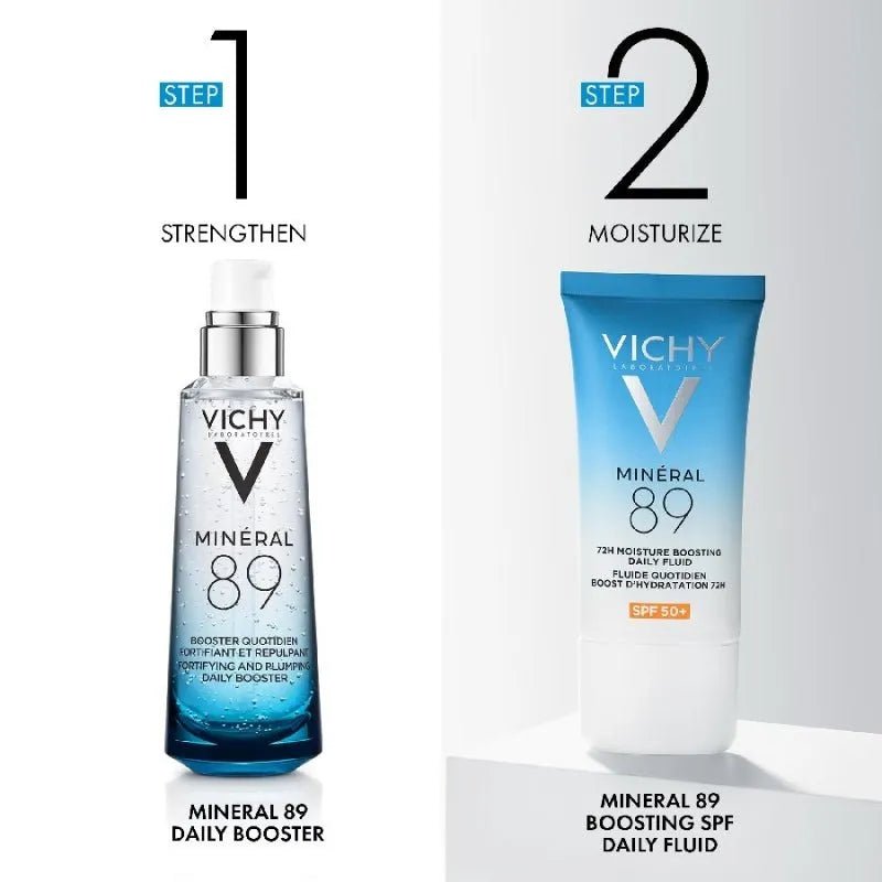 Explore the latest Vichy Minéral 89 72H Daily Fluid SPF50+ with pure Hyaluronic Acid, designed to shield your skin from both UVA & UVB rays while providing 72-hour hydration.