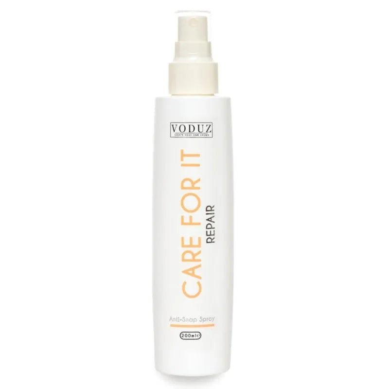 Voduz Care For It Repair Anti Snap Spray 200ml strengthens and protects hair against breakage and damage. Its advanced formula repairs weakened strands, reducing snap and split ends while enhancing hair’s resilience. Lightweight and easy to apply, this spray helps maintain healthier, smoother hair that looks and feels revitalized every day.