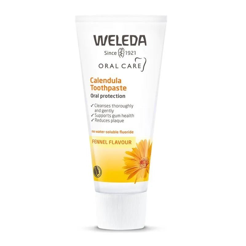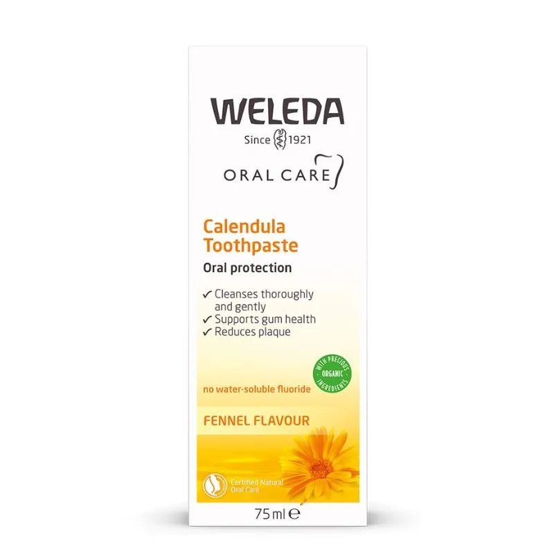 Harness the calming and restorative qualities of calendula with this naturally flavored toothpaste, enriched with fresh fennel. Its natural anti-inflammatory and antibacterial properties effectively soothe and shield sensitive gums, while the gentle fine chalk base ensures a thorough and gentle cleansing.