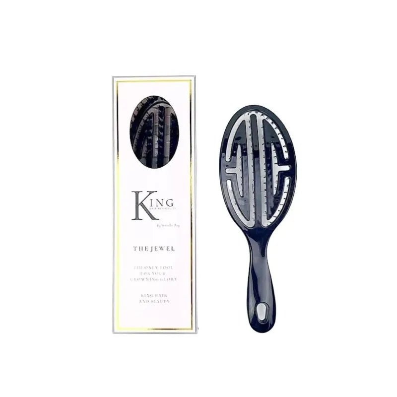 The King Hair & Beauty Jewel Hairbrush is the ultimate haircare tool for maintaining your luscious locks. Its practical design is seamlessly blended with a stylish aesthetic, making it a must-have accessory for any haircare routine. The dual bristles and vented curved head ensure that this brush glides effortlessly over your hair and scalp, providing a gentle and comfortable brush .
