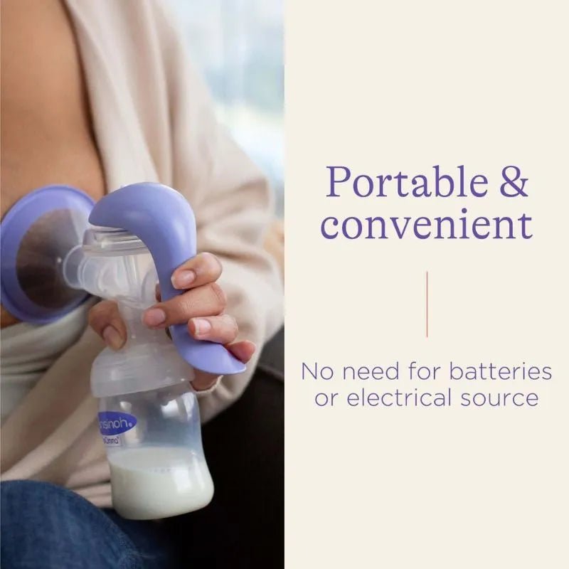 Lansinoh’s Manual Breast Pump provides a portable and convenient option for breastfeeding women who want to express discreetly and in comfort while on the move, as it does not require batteries or an electrical source.