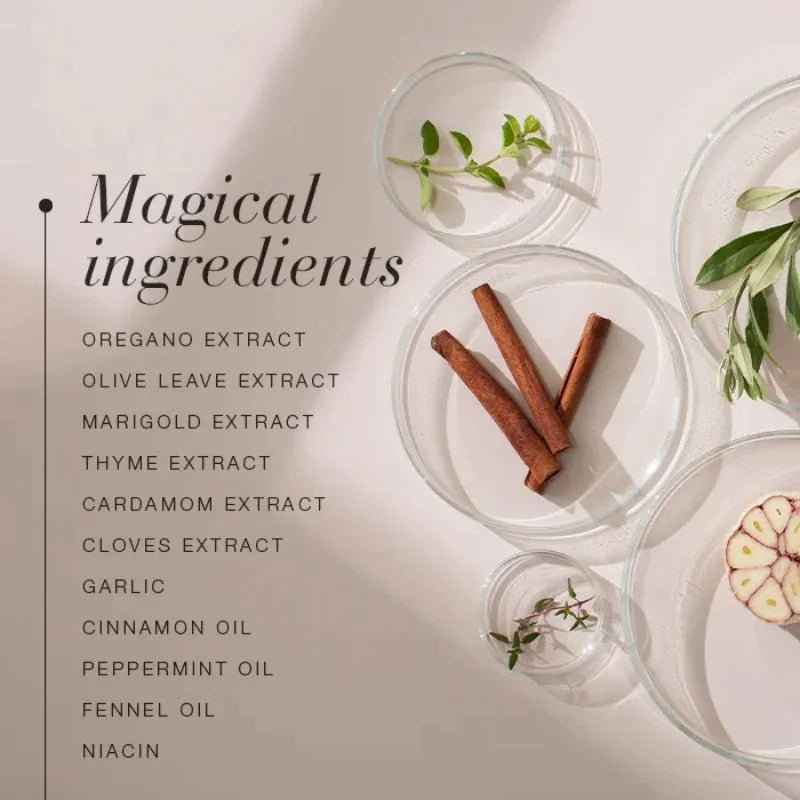 This Danish-made tablet features oils from cinnamon, fennel, and mint, alongside standardized extracts such as thyme and garlic. Niacin supports healthy mucous membranes. Cinnamon, sourced from the inner bark of Sri Lanka’s cinnamon zeylanicum, has a long history as a natural antimicrobial agent against bacteria, yeast, and fungi. The cinnamon oil in this product is obtained through bark distillation.