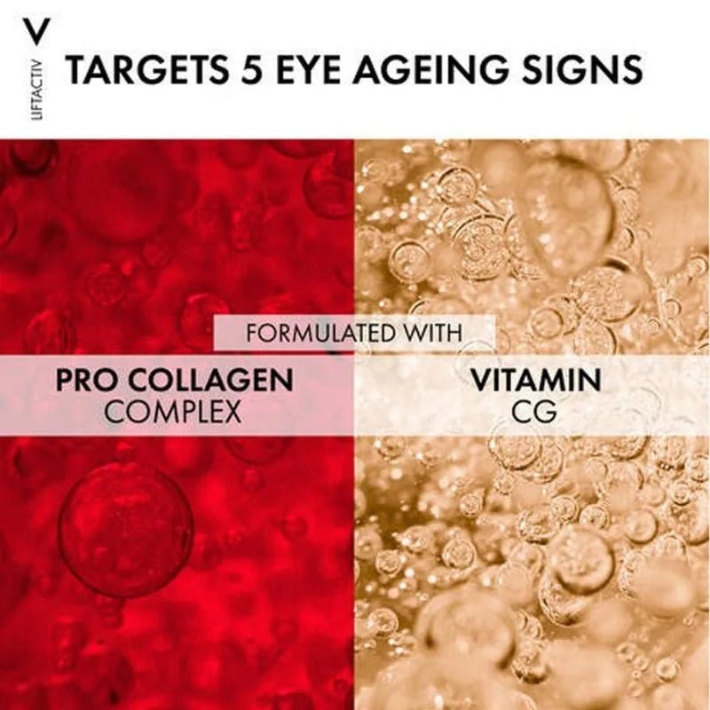 From the experts at Vichy, comes Liftactiv Collagen Specialist Eye Care cream, specially formulated to address five common signs of eye aging: crow’s feet, under eye wrinkles, eye bags, dark circles, and drooping eyelids. Dermatologists stand by this eye cream, tested on sensitive skin and suitable for all skin types.