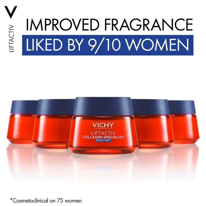 Liftactiv Collagen Specialist Night Cream is now formulated with a triple dose of peptides. This powerful night cream targets visible signs of collagen loss on skin, to help skin look and feel plumped, firmer, and revitalised.