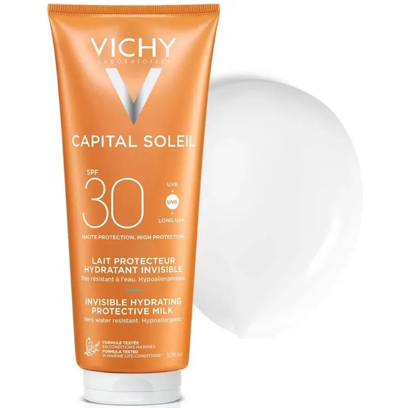 The Vichy Capital Soleil Hydrating Body Milk SPF30 300ml is a non-greasy sunscreen that is enriched with hydrating Hyaluronic Acid. It is perfect for families and provides broad-spectrum UVA and UVB protection against the harmful effects of the sun's rays.