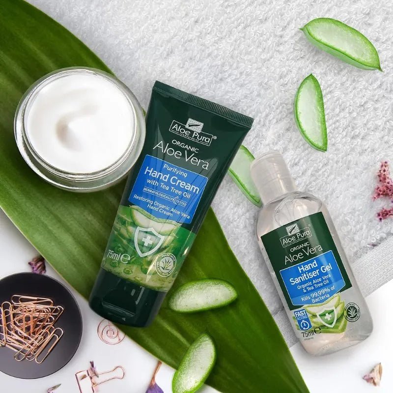 Aloe vera can provide a host of beneficial properties: soothing, moisturising, softening and helping to restore dry and damaged skin