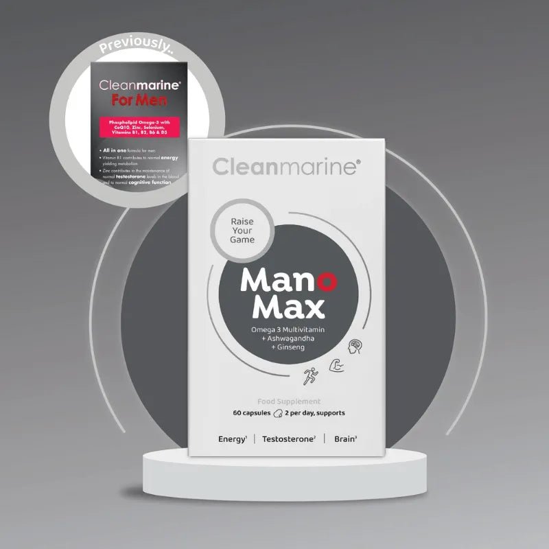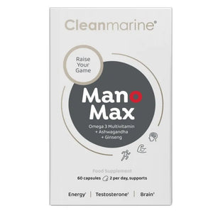 ManoMax is the unique all-in-one Omega-3 multivitamin, rich in essential nutrients providing daily nutritional support for men. So you can raise your game! With Phospholipid Omega-3 DHA providing the essential fatty acids required for the normal function of the brain, and added KSM-66 Ashwagandha and Ginseng for maximum support.