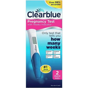 The Clearblue Pregnancy Test contains 2 digital tests with a Weeks Indicator feature. Through advanced technology, this test can accurately determine your pregnancy stage. Easily read the results in simple, straightforward language.