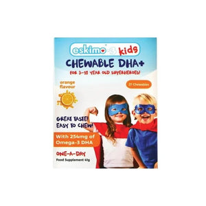 Enhance your child's development, brain function, vision, and immunity with Eskimo Oil Kids - Chewable DHA+ 27 Gummies. These gummies are specially formulated to provide a tasty and easy-to-take way of supplementing omega-3 and vitamin D, essential nutrients for supporting brain health and immunity.