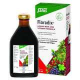 Floradix Liquid Iron Formula 500ml contains organic iron (II) from ferrous gluconate, vitamins B1, B2, B6, B12 and C. Iron, vitamins B2, B6, B12 and C reduce tiredness and fatigue and support energy metabolism. It also helps with red blood cell and haemoglobin formation. Vitamin C enhances iron absorption.