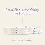 Bags can be stored upright or flat in the fridge or freezer. When stored flat, bags are easier to thaw.