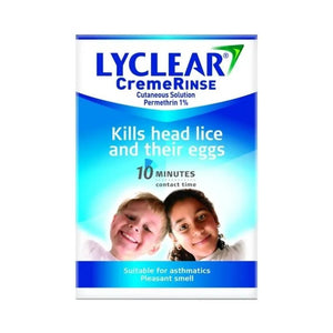 Lyclear Crème Rinse is formulated with permethrin for the effective elimination of head lice and eggs within 10 minutes. To prevent reinfestation, a repeat treatment is necessary. Adults and children aged 6 months or more can use this product, which is available in single or double packs of 59 ml bottles and comes with a fine-toothed comb to remove lice and eggs post-treatment.