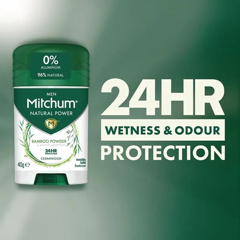 Discover the Mitchum for Men Bamboo Powder Cedarwood Stick Deodorant 40g, designed for long-lasting 24-hour protection. Mitchum's Natural stick collection harnesses the power of Cedarwood Powder to naturally absorb wetness, without the use of aluminum. This premium deodorant contains a blend of Botanical Oil Extracts that effectively neutralizes odors, utilizing 96% natural ingredients for a luxurious and sophisticated experience.