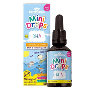 Indulge in the convenience of sugar-free Natures Aid Mini Drops DHA drops. Made from environmentally-friendly fish and flavoured with natural lemon, these drops are also free from artificial flavours, sweeteners, colours, and preservatives, offering a delicious and nutritious way to supplement your diet.
