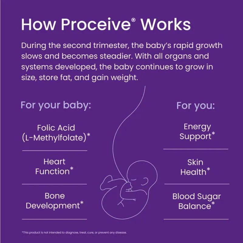 Proceive Pregnancy Trimester 2 offers tailored nutrition for both you and your baby during weeks 13-27 of pregnancy.