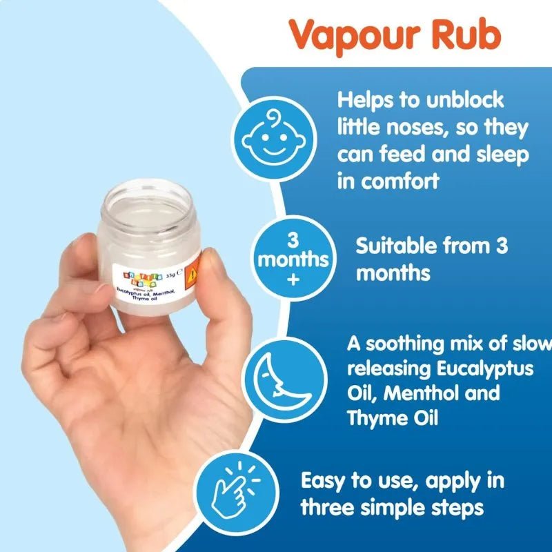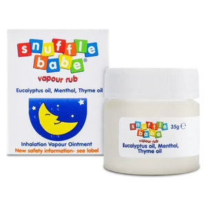 Snufflebabe Vapour Rub is an effective and mild decongestant containing a gentle blend of Eucalyptus Oil, Menthol and Thyme Oil. The vapours from these oils help to ease your little one’s nasal congestion so they can feed more comfortably and sleep more soundly.