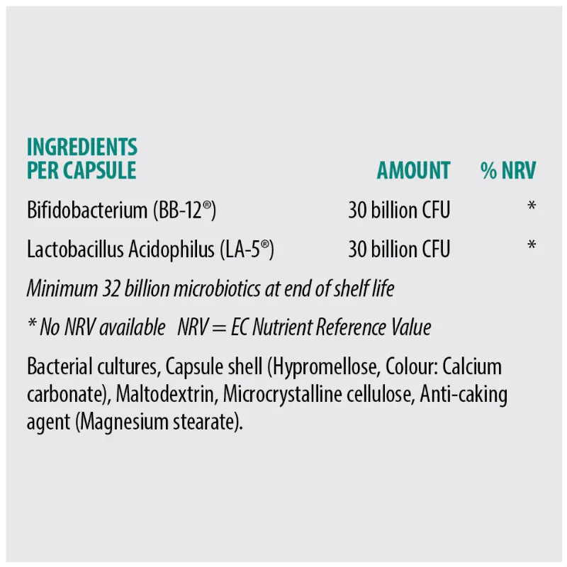 • 50:50 blend of Lactobacillus Acidophilus (LA-5) and Bifidobacterium (BB-12). Two of the best studied patented probiotic organisms.