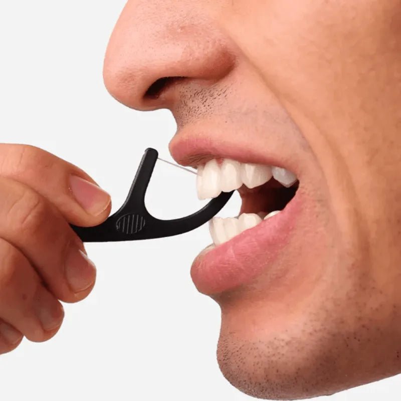 The pointed floss pick end may be used to dislodge food & plaque from between the teeth and the fresh mint flavour helps to combat bad breath.
