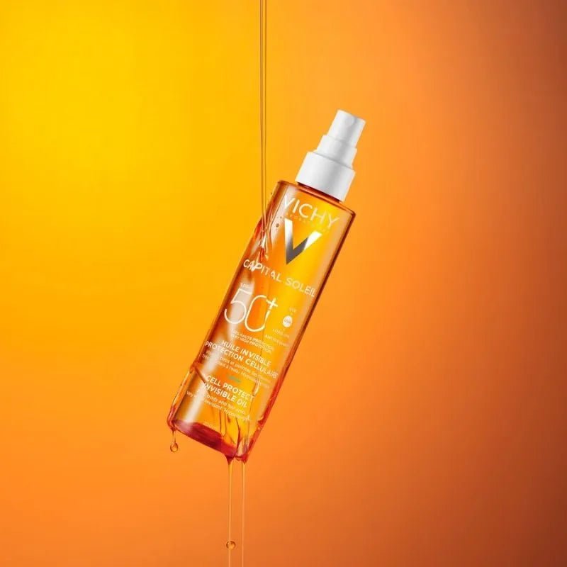 Suncare is skincare with Capital Soleil Cell Protect Oil Spray SPF50+ for advanced UV protection for face and body. Protects at skin cell surface level to help improve skin quality to target flaking & tightness from dry skin, and dullness. Formulated with advanced protection for defence against UVA, UVB, Long UVA. Skin texture looks refined and radiant; skin feels nourished and soft; and skin barrier is strengthened.