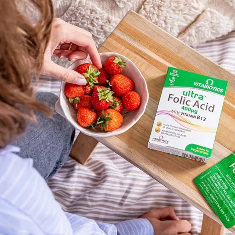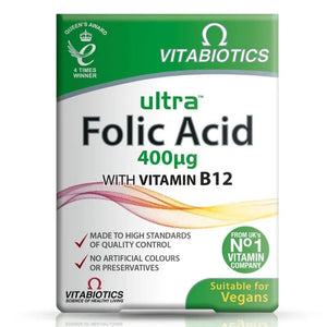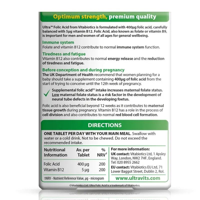 Achieve optimal health with the Vitabiotics Ultra Folic Acid Tablets 60 Pack. This essential supplement combines 400µg of Folic Acid with Vitamin B12 to provide a powerful formula that helps reduce tiredness and fatigue.