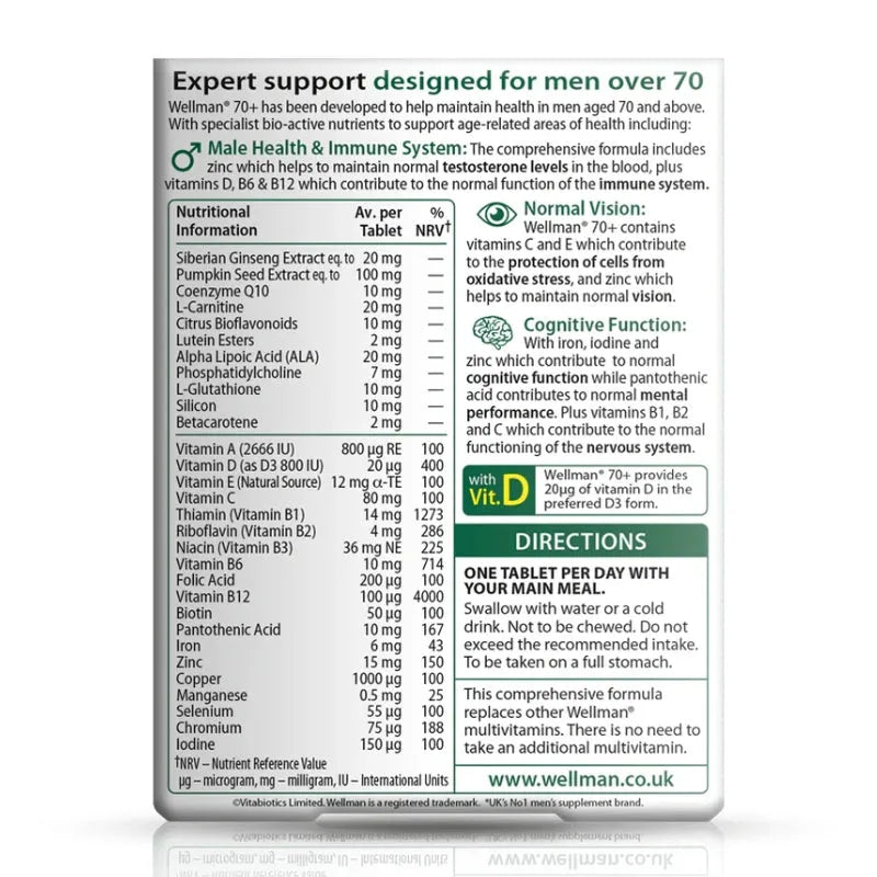A carefully formulated supplement for men 70 and over, specially developed to support areas of health particularly relevant to men in the later stages of life, such as; heart, brain, energy, vision, immune and general health & vitality. From Wellman, the UK's number 1 men's supplement brand.